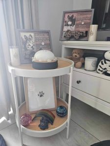Today, Betty & Wilma’s Reterniti Stone sits alongside their paw prints and photographs, a cherished centrepiece in Janine’s home. It brings her immense peace, keeping her dogs’ memories close in a way that feels tangible.